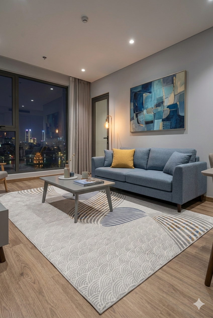 Họa tiết đường cong nhẹ giúp phòng khách trông mềm mại và tinh tế