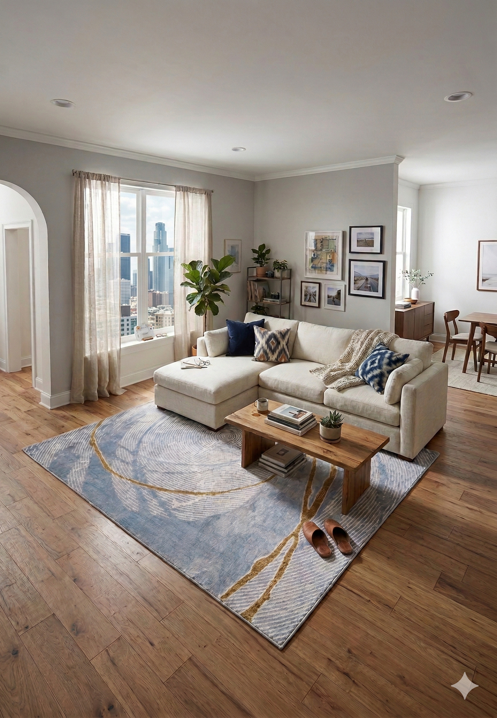 Hợp với sofa kem, be hoặc nội thất gỗ sáng