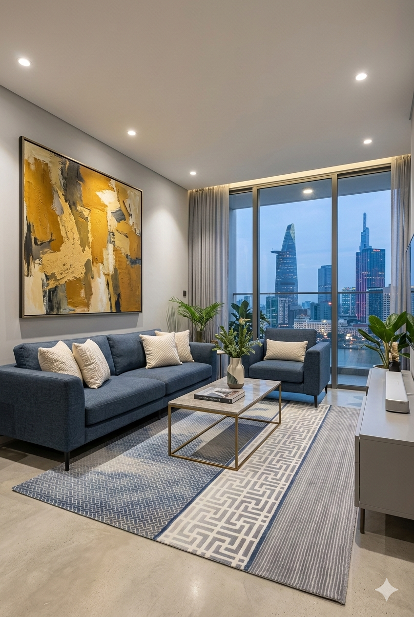 Hợp với sofa xanh navy, xám hoặc nội thất phong cách hiện đại