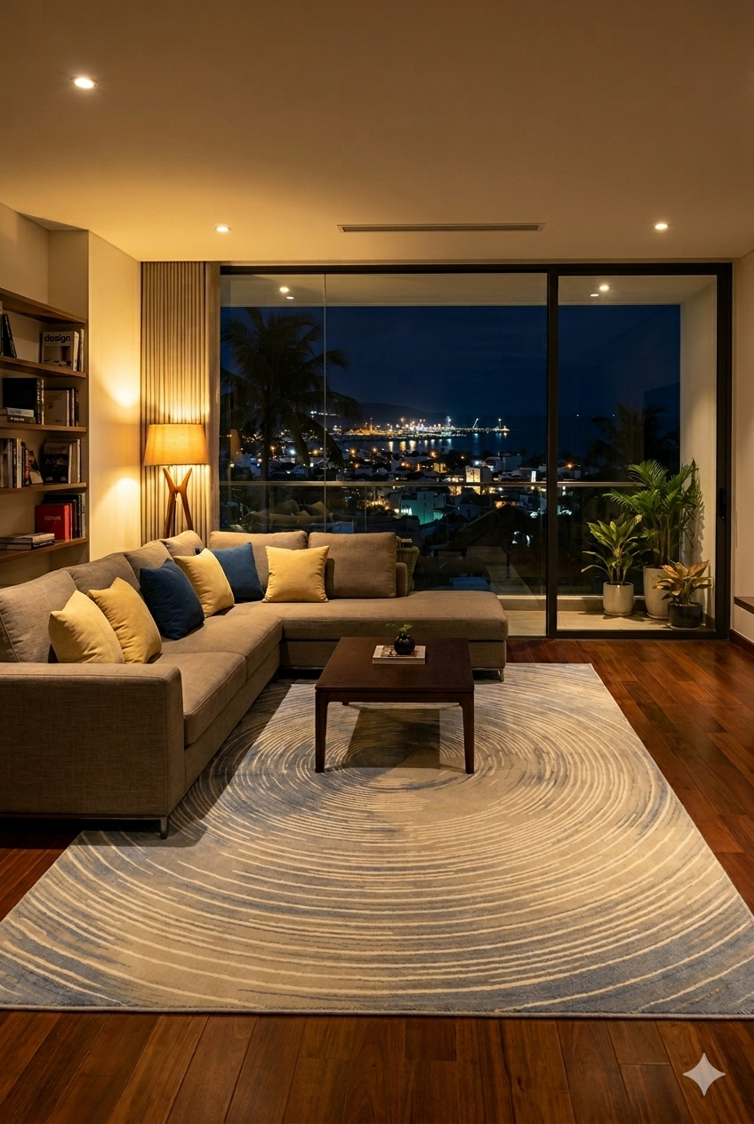 Thảm tông kem đất – họa tiết mềm hiện đại