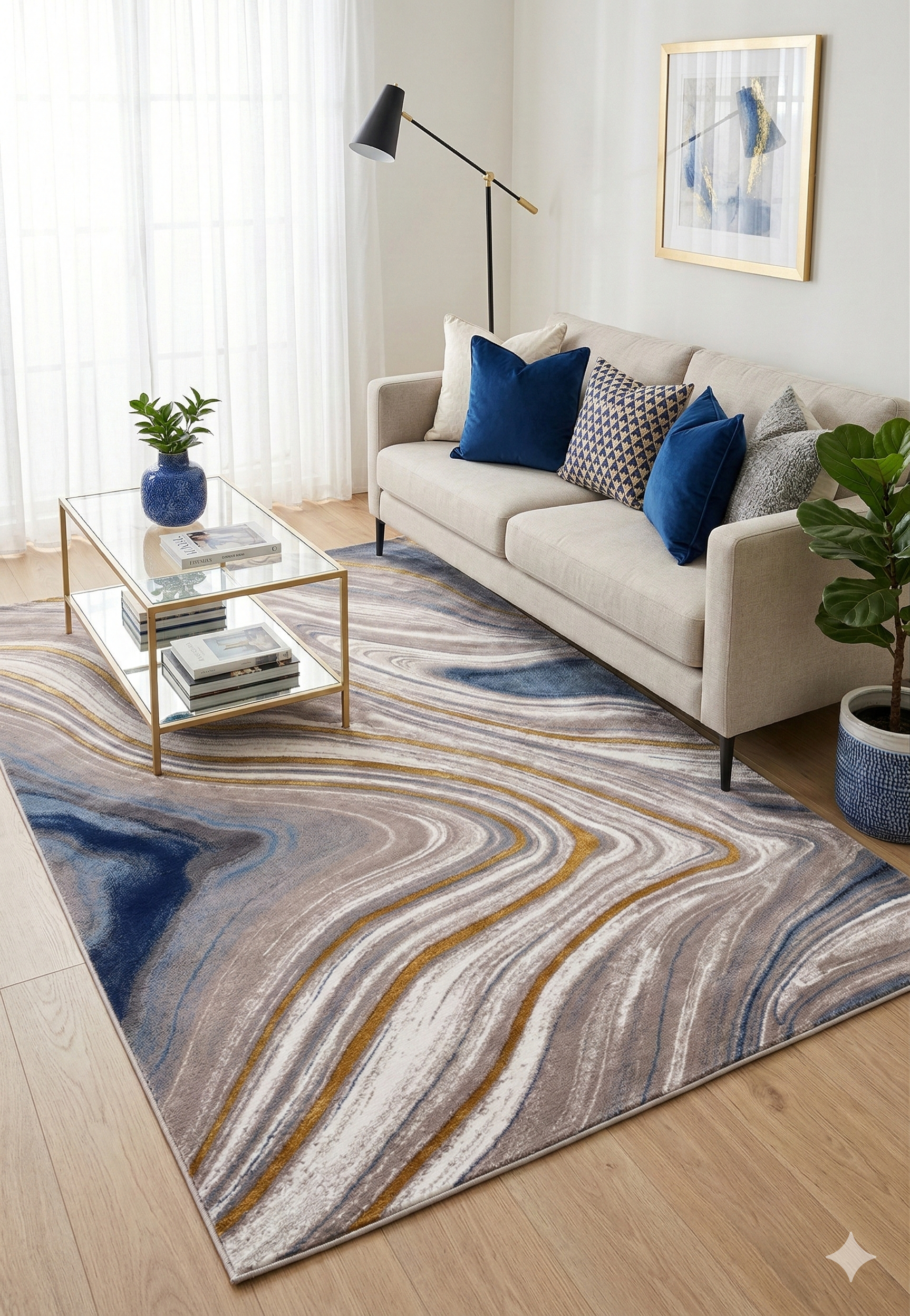 Hợp với sofa kem, trắng hoặc nội thất tông xanh navy