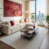 Kết hợp với tường be, trắng và tranh nghệ thuật màu nổi tạo điểm nhấn
