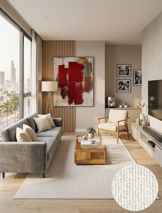 Hợp với sofa xám, kem hoặc nội thất gỗ sáng