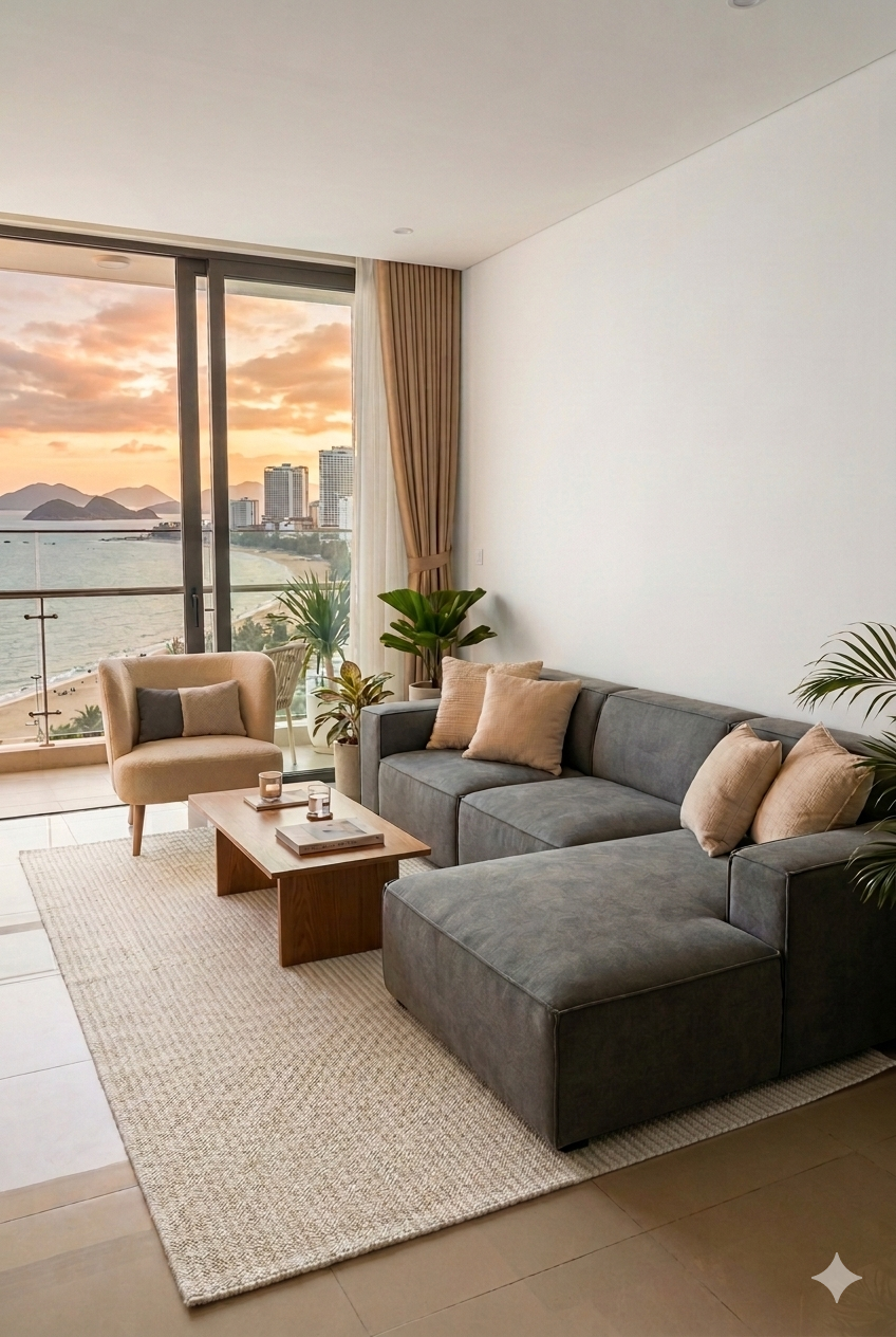 Hợp với sofa xám, kem hoặc nội thất gỗ sáng
